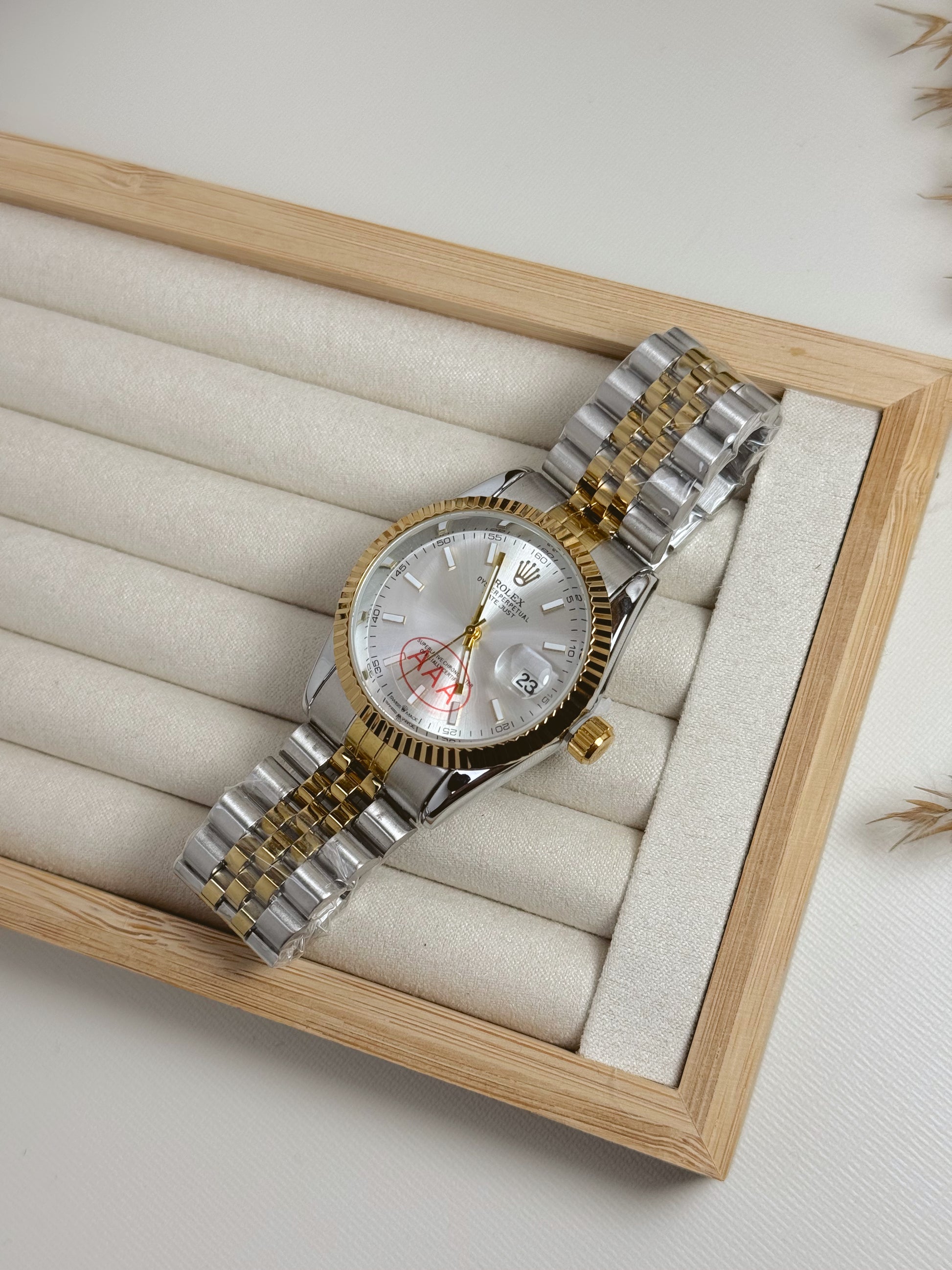 White silver and gold rolex watch unisex